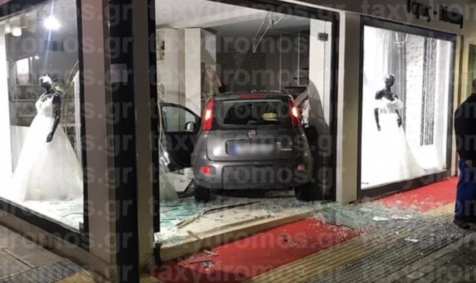 Χαμός στον Βόλο: Αυτοκίνητο με τρελή πορεία έπεσε σε μαγαζί με νυφικά